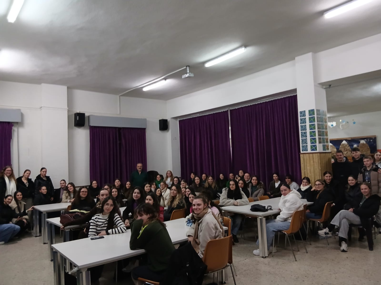 La jornada comenzó a las 9:30 con la llegada del alumnado al Salón de Actos del centro, donde fueron recibidos por el Director del colegio con un cordial saludo de bienvenida. A continuación, se desarrollaron sesiones breves y dinámicas sobre “La educación para la paz en Primaria y Secundaria”, en las que se explicaron de manera clara y práctica los mecanismos que el colegio utiliza para prevenir, evitar y resolver conflictos, así como para promover un compromiso activo con la paz. Las explicaciones se adaptaron al contexto real del centro, mostrando cómo su carácter intercultural, interconfesional e intergeneracional sirve como base para fomentar actitudes de respeto y convivencia pacífica entre el alumnado, que proviene de más de veinte nacionalidades distintas.